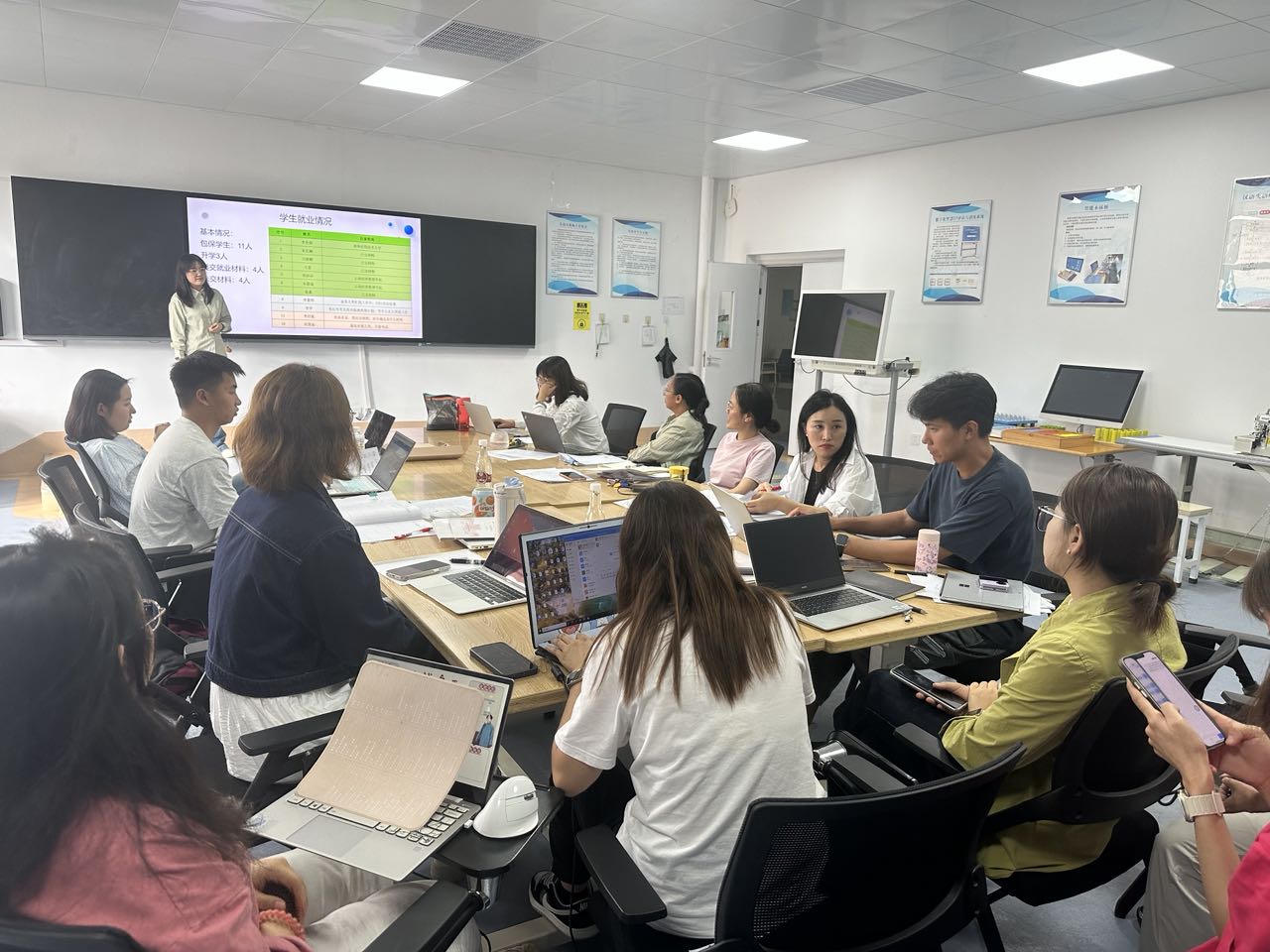 在当前就业市场竞争激烈的背景下,为加强云南经济管理学院医学院康复治疗学专业就业工作的组织和协调,推动就业政策的落实,提高就业工作的效率和质量,2025年6月25日,康复治疗学专业全体专职教师及带班辅导员在实验楼402开展第七次就业推进会,会议由康复治疗学专业负责人蔡芸蔓老师主持。此次会议不仅提高了康复治疗学专业全体教师对就业工作重要性和紧迫性的认识,增强了做好就业工作的责任感和使命感,还促进了各位老师之间的交流与合作,为共同推动就业工作奠定了基础。