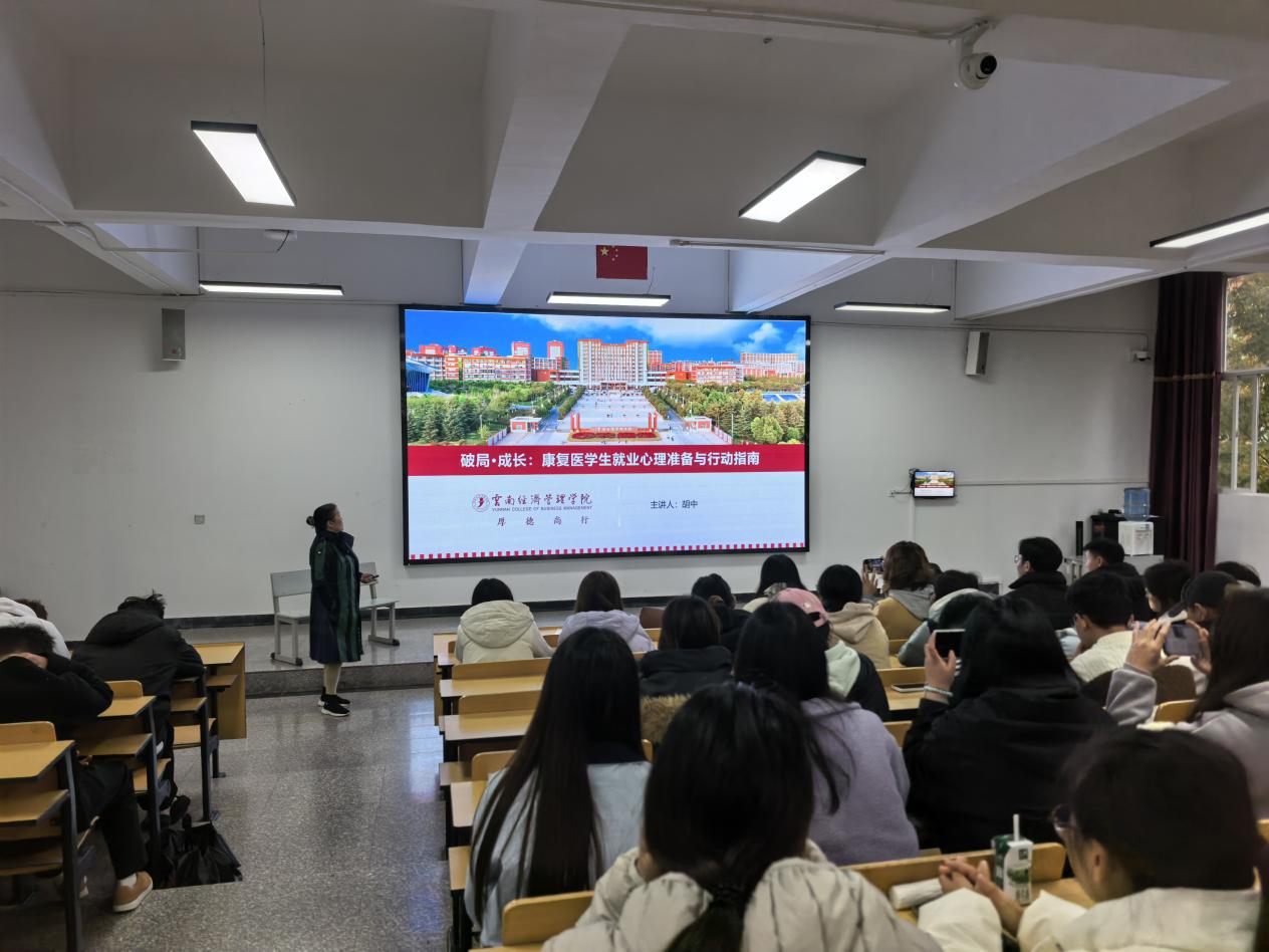 - 为帮助口腔医学技术专业新生明确职业发展方向,树立科学的职业规划意识,云南经济管理学院医学院口腔医学技术专业于2025年11月18日在图书馆114成功举办“从起点到未来:解码你的职业基因”主题宣讲会。本次活动特邀深圳玉汝成口腔材料有限公司教育项目总监任贺担任主讲嘉宾,口腔医学技术专业2025级本科及专科全体新生班级参与此次宣讲。 宣讲会伊始,任贺总监结合口腔医学技术行业发展趋势与企业人才需求标准,以“职业基因”为核心切入点,系统阐述了口腔医学技术专业学生从校园学习到职场实践的全周期成长路径。他指出