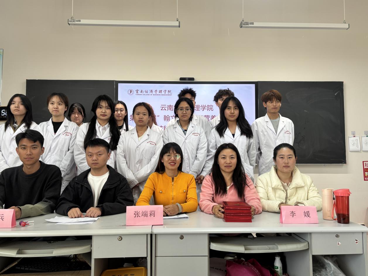 - 2025年11月15日,在全民营养周“吃动平衡 健康体重 全民行动”的主题引领下,云南经济管理学院第十五届“翰文杯”医学营养基本操作技能大赛专科组比赛在安宁校区隆重举行。本次赛事作为落实《健康中国2030规划纲要》的重要实践,紧扣“健康经管-合理膳食行动”主线,通过14:00-17:00三个小时的激烈角逐,充分展现了专科层次医学人才在营养健康领域的专业素养。图1 专科组评委老师们齐聚,共赴营养盛会。本次大赛特邀三位专业评委保驾护航:医学院康复治疗学专业实训中心主任李媛老师、教研室主任朱兵老师及《