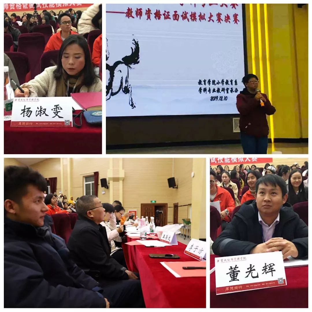 2019年12月10日19:00,由教育学院小学教育系学科教研室承办的第九届“翰文杯”学科专业大赛——教师资格证面试技能模拟大赛之决赛,在云南经济管理学院安宁校区图书馆200人报告厅盛大举行。到场的评委嘉宾有前云南师范大学教学论教授、现云南经济管理学院校级督导——包黎老师;安宁市小学语文学科带头人,昆明市小学语文骨干教师,多次获得教师基本功竞赛和课堂教学比赛一等奖的一级教师——刘继涛老师;安宁市小学数学学科带头人、昆明市小学数学学科带头人,安宁市李所贵名师工作室成员,安宁市实验学校小学数学教研组长——李德兴老师;教育学院院长崔立华老师;教育学院党委副书记杨淑雯老师;教育学院办公室主任董光辉老师;教育学院小学教育系骨干教师王荣文老师;教育学院小学教育系教学技能教研室主任李子方老师。
