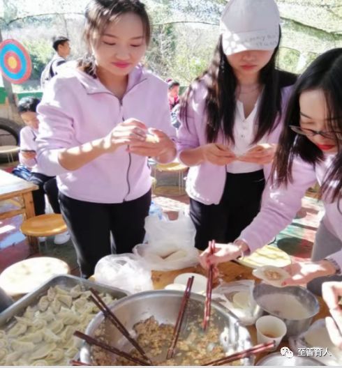 全体教师从学校集合出发,走路15分钟后到达战狼拓展基地。在活动开始前,全体教师自己动手“包饺子”,既促进了同事间的联络与合作,也增强了大家的做饭技能。