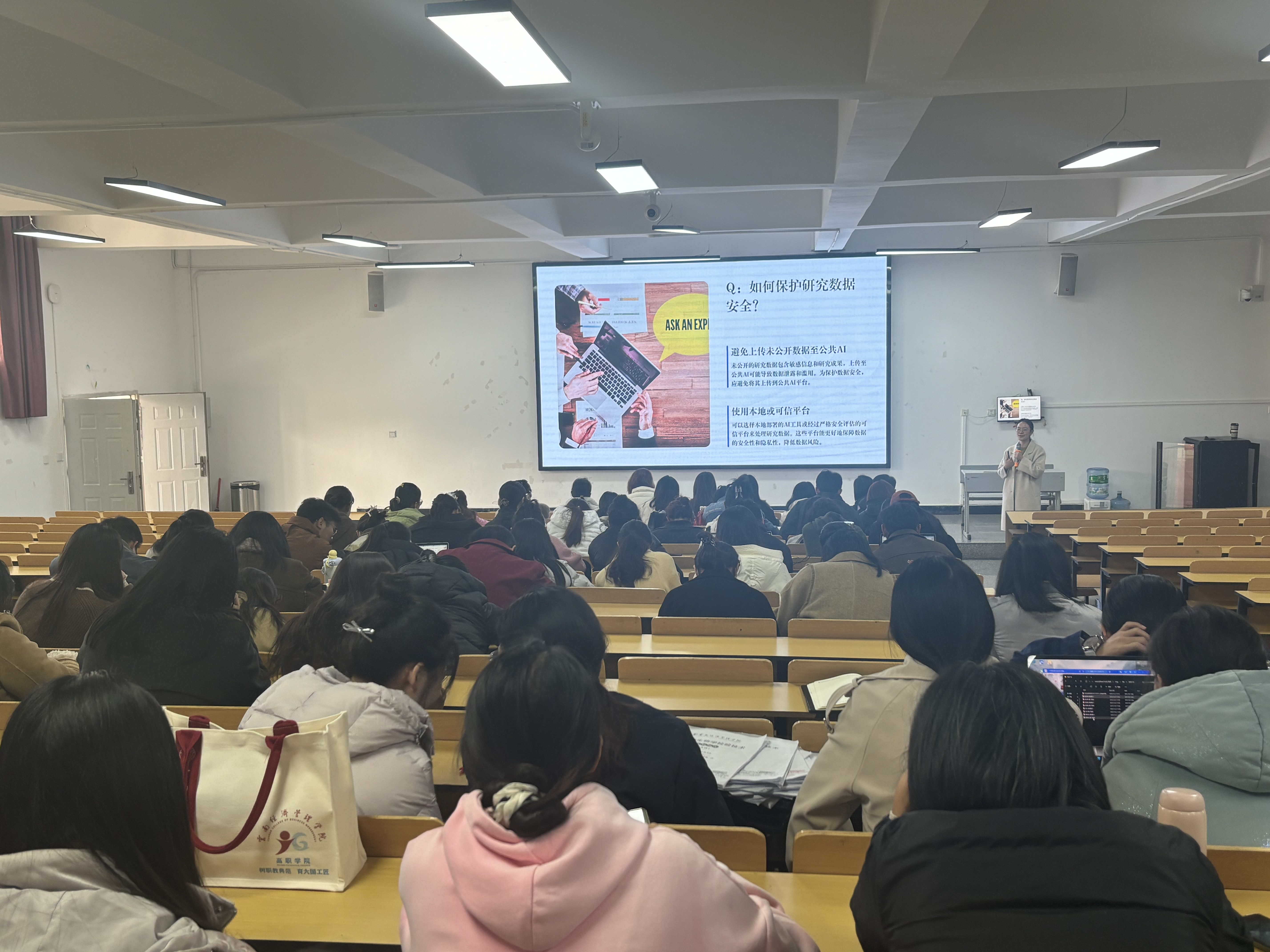 - 2025年12月2日下午,医学院在附属楼一楼101报告厅成功举办“科研能力提升——AI赋能科研”专题培训会。本次讲座由康复治疗学专业负责人蔡芸蔓老师主讲,围绕AI技术在医学科研中的创新应用,系统分享了前沿研究方法与实用工具策略,吸引了来自全院的近百名教师及科研人员积极参与。 此次分享内容基于蔡芸蔓老师近期参加的“高校教师AI科研赋能认证项目”的学习成果,结合多名专家的授课精华,聚焦AI时代科研范式的变革趋势与高效发表路径,并针对医学研究的实际需求进行了深度整合与重构。 蔡老师以“构建AI辅助的医